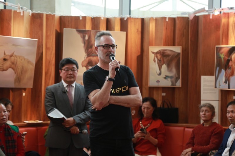 Firepit Gallery 总监 Marcus Jake 先生随后致辞,欢迎各界观众来到 Firepit Art Gallery,并对主办方将展览落地格林尼治社区表示感谢。他表示,Firepit Gallery 一直致力于为社区提供开放、友好的艺术空间,让艺术与文化成为连接不同群体的共同语言。本次展览将陶瓷、年画、皮影等多种河南非遗项目带到伦敦,不仅呈现了精湛的手工技艺,也带来了可被更多人理解的故事与审美体验。看到观众在展品前停留、交流、拍照与讨论,他对活动带来的“真实互动”感到欣慰,并期待展期内有更多本地居民走进展厅,持续感受中原文化的魅力。