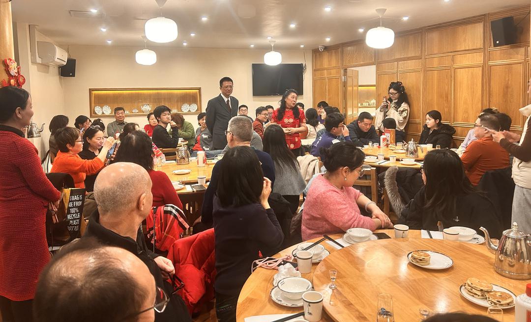 酒会结束后,河南老乡及来宾80余人在老常家面馆出席晚宴聚会,庆祝新春佳节。