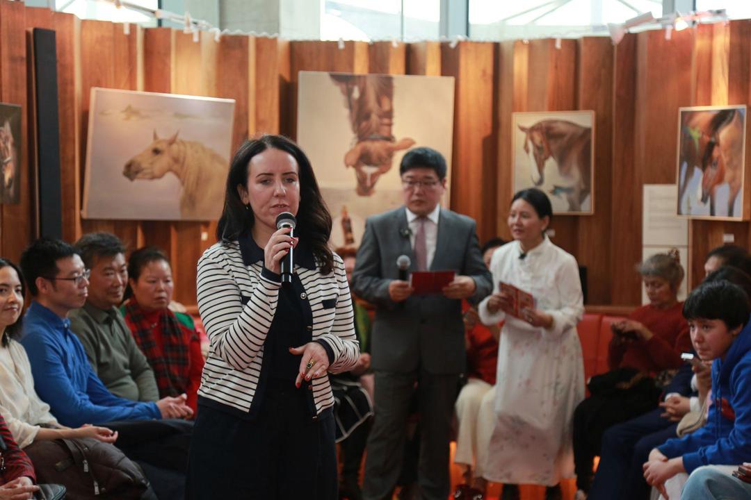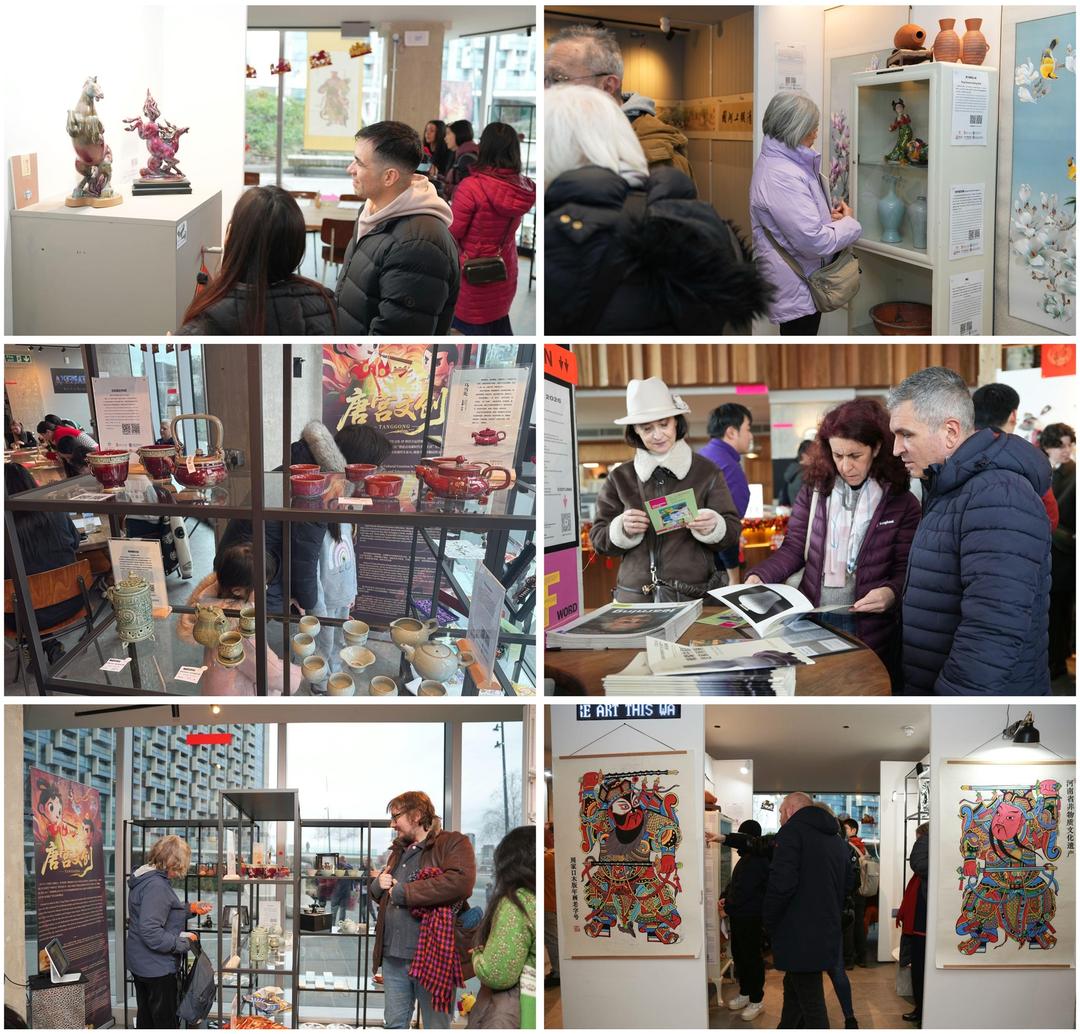 本次展览汇集官窑、汝窑、钧窑、花瓷、绞胎瓷、蒲城古陶、相州窑、木版年画(安阳滑县/朱仙镇/周口关公庙)、罗山皮影、汴绣、嵩山传拓、仰韶文化、泥咕咕、剪纸、黄帝文创、河南老照片等多项具有代表性的河南非遗及文创,特别是著名文化品牌唐宫文创、安阳博物馆和禹州钧瓷文化博物馆的展品的参展,既展现传统工艺的精湛技艺,也体现中原文化深厚的历史底蕴与时代活力。展品还包括早年毕业于河南的著名旅英画家邹世全的、以马为主题一组油画,为中国马年添加了当代风采和东西方的文化对话与融合。现场吸引了众多英国当地居民与华人社区观众驻足体验,许多观众表示,展览让他们更直观地理解中国传统文化的审美与匠心,也加深了对河南历史文化的认识。作为连续三年英国河南非遗文化展的主要策展人和本次活动主办方全英河南同乡联谊会常务副会长、河南大学英国校友会会长王雷表示:“我希望这场展览呈现的不只是‘被展示的非遗’,而是‘能走进生活的非遗’。传统工艺可以很珍贵、很有历史重量,但它不应该只停留在博物馆橱窗里,而是要重新回到当代人的日常:被看见、被使用、被喜爱,甚至被带回家。”